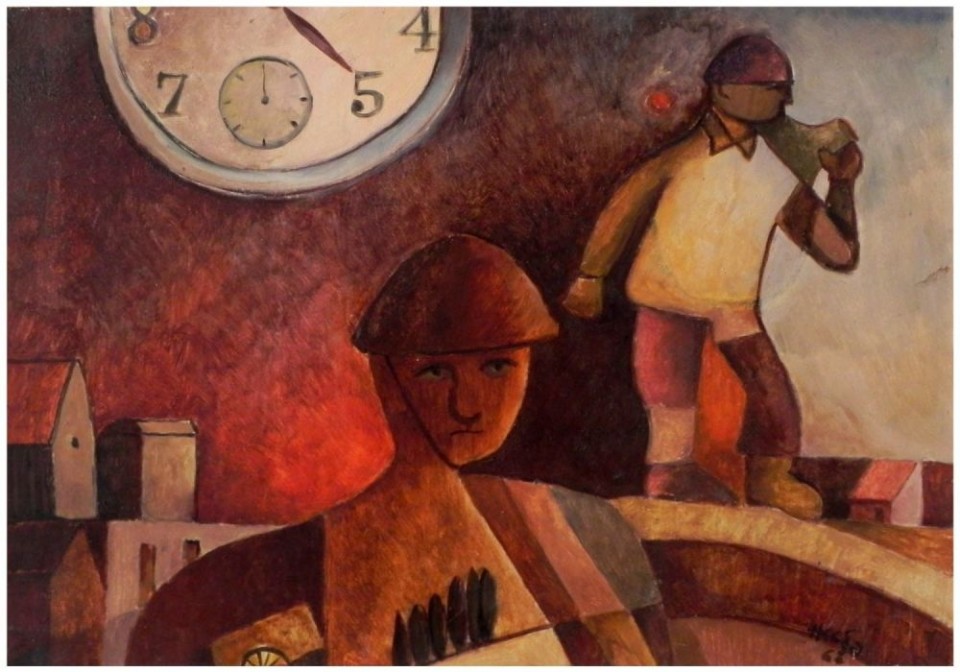 Technique: Oil on cardboard (attached to wood)
