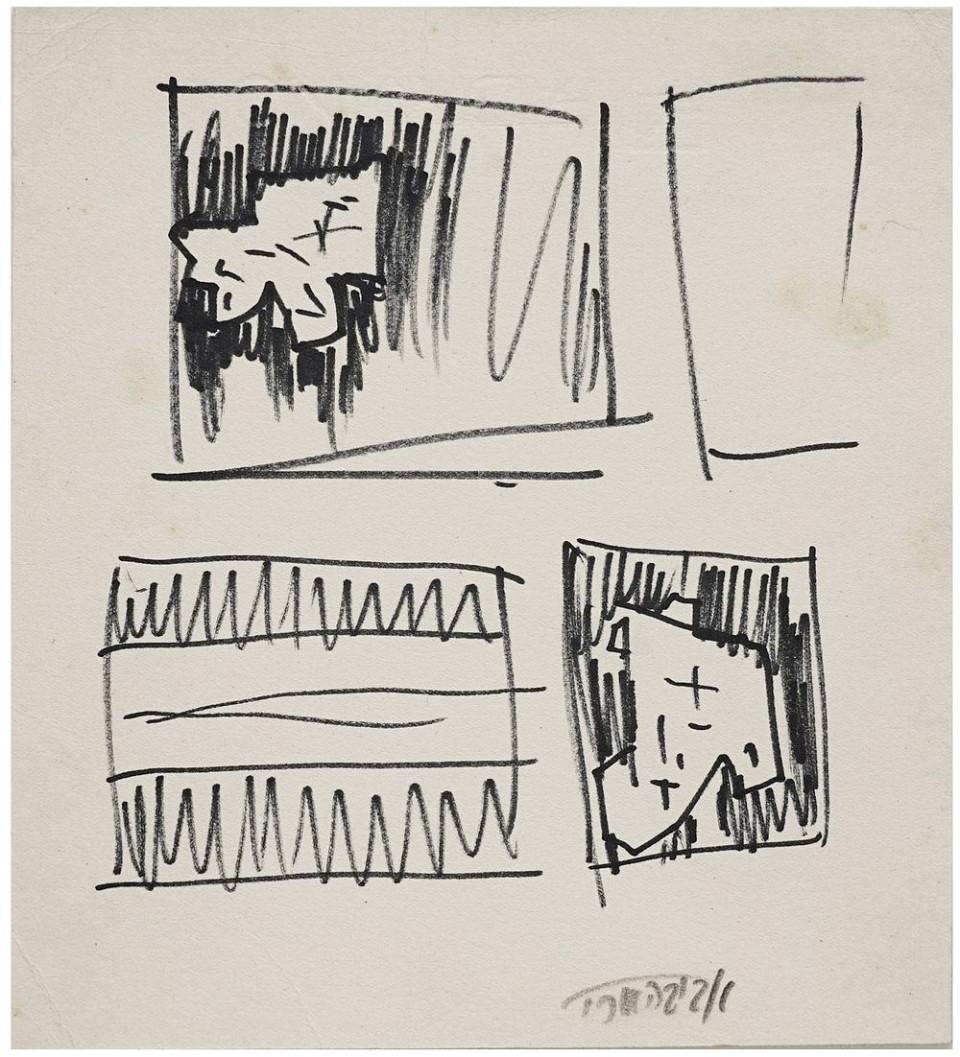 טכניקה: דיו על נייר מוצמד לנייר אחר