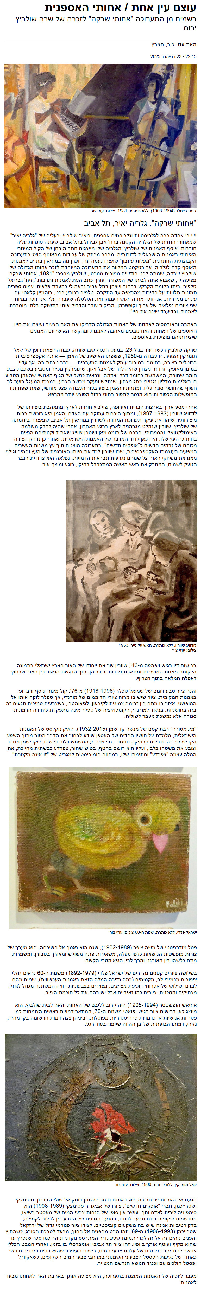 ⇐ פרסומים עוזי צור על "אחותי שרקה" → → הקודם: יאיר שולביץ על "ציורים" ← הבא: יאיר שולביץ "אחותי שרקה" ביקורת על התערוכה (23.12.25) פורסם ב"עוצם עין אחת, הארץ". « הקודם: יאיר שולביץ על "ציורים" הבא: יאיר שולביץ "אחותי שרקה" »